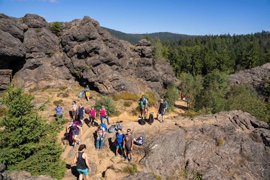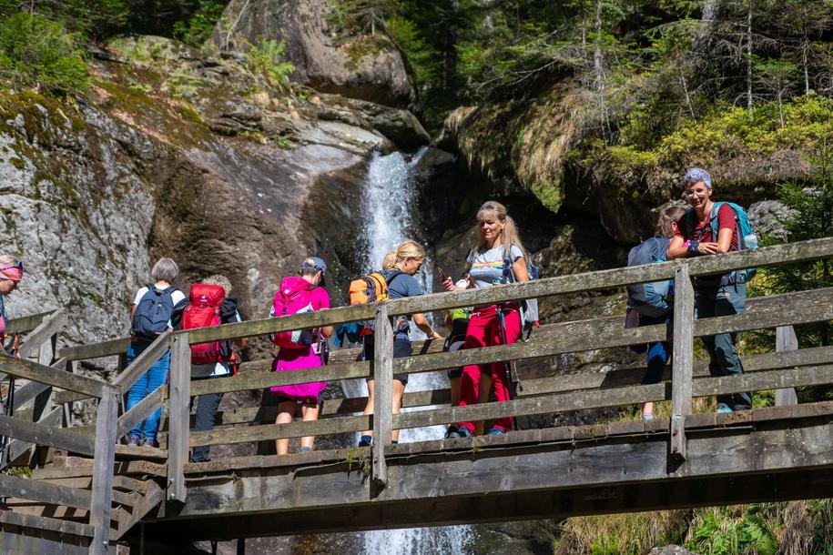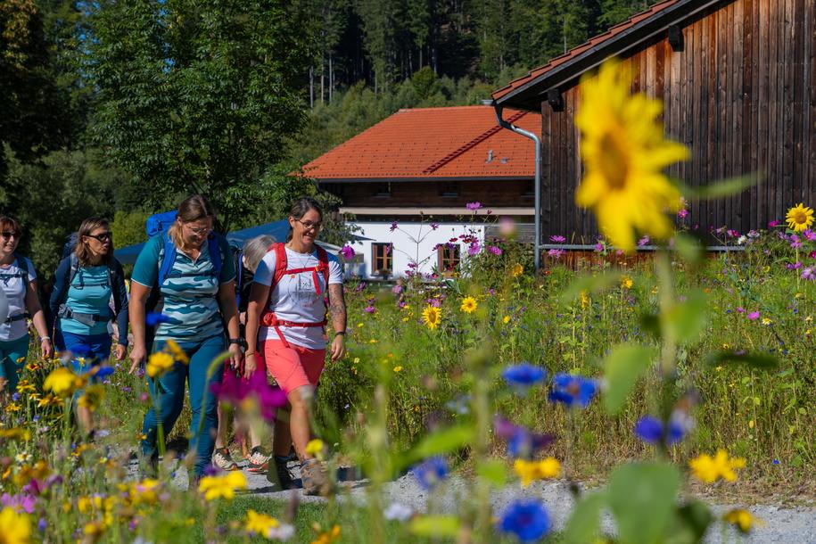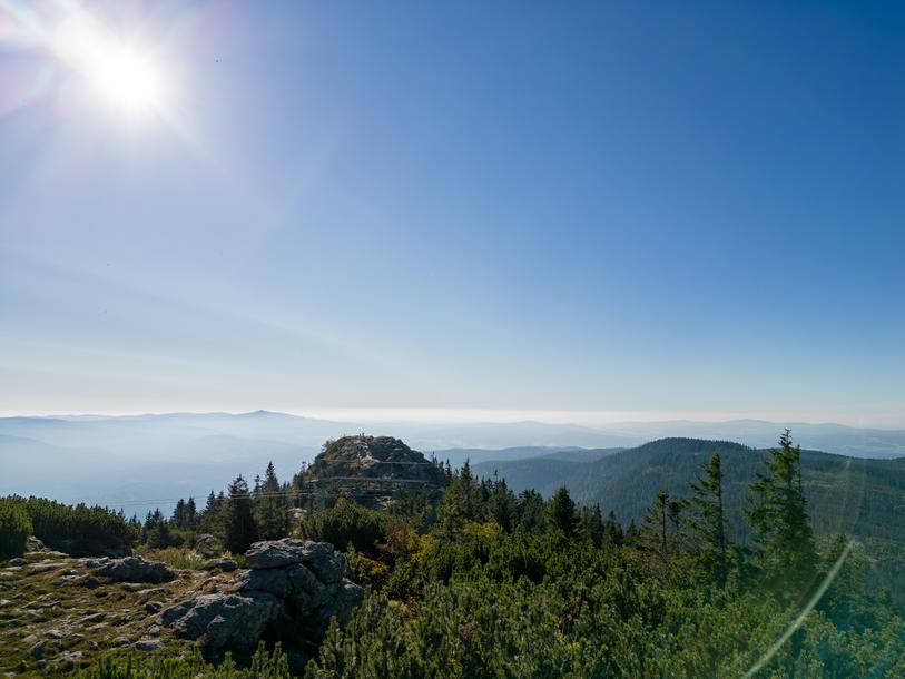 Die sieben schönsten Gipfel rund um Bodenmais werden bei dieser anspruchsvollen Tour erwandert. Wer es sportlich angehen will, nimmt sich die 43 Kilometer an einem Tag vor. Die Seven-Summits-Tour startet am Rathaus in Bodenmais und führt zunächst Richtung Süden zu den beiden ersten Gipfeln Kronberg und Harlachberg. Unterwegs warten mit der urigen Kuhalm und der idyllischen Gutsalm Harlachberg zwei schöne Einkehrmöglichkeiten. Insbesondere vom Harlachberg-Gipfel aus bietet sich ein wunderbares Panorama auf Bodenmais und das dahinterliegende Arbermassiv. Über die Ortsteile Glashütte, Riederin und Miesleuthen führt die Strecke weiter entlang des Rothbachs und auf bequemen Waldwegen zum Sternknöckel, dem dritten Gipfel. Die südlichen Gipfel liegen nun hinter dir. Über die Ortsteile Waid, Sternpoint und Mais geht es weiter zum imposanten Hochfall. Bestaune das Naturschauspiel und halte einen Moment inne, bevor es entlang des Moosbachs über Tausender, Hüttlschachten und Enzianwies (ab hier auf dem Goldsteig) zum Kleiner Arber (1384 m) geht. Bei schönem Wetter reicht hier die Sicht bis zu den Alpen. Nach einem kurzen Abstieg hast du dir eine deftige Brotzeit in der gemütlichen Chamer Hütte verdient. Der vierte Gipfel wäre geschafft und der fünfte, das Dach des Bayerischen Waldes, ist bereits im Blick. Auf dem 1456 Meter hohen Großen Arber, dem König des Bayerischen Waldes, genießt du Gipfelglück pur, inklusive einer Rundumsicht auf den Bayer- und Böhmerwald. Vom Großen Arber aus führt dich die Route zu einem der schönsten Plätze im „Woid“, dem idyllischen Mittagsplatzl. Von hier blickst du über die 400 Meter steil abfallende Arberseewand auf den Großen Arbersee. Kurz darauf erwartet dich mit dem Hochzellberg der vorletzte der „Seven Summits“. Am Startplatz der Gleitschirmflieger angekommen, eröffnet sich einer der schönsten Ausblicke auf Bodenmais. Genieße es! Nun steht die letzte Etappe an. Auf schmalen Steigen wanderst du zur Schönebene und um den Brandtner Riegel hinauf auf den Silberberg, den Bodenmaiser Hausberg. Wen du die „Seven Summits“ an einem Tag bewältigst, erwartet dich hier ein traumhafter Sonnenuntergang mit Blick auf Bodenmais und das angrenzende Zellertal. Nun bist du Bezwinger der Seven Summits Bodenmais!