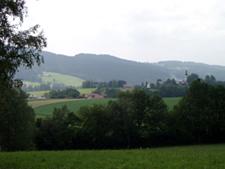 Ab der Teerstraße gehen wir auf Ab55 weiter Richtung Riedl. Ab der Anhöhe von Riedl folgen wir der Teerstraße bergab und biegen kurz vor dem Woferlhof rechts in den Waldweg Ab 11 ein und wandern bergauf bis zum Großen Riedelstein. Vom Gipfel mit seinem steinernen Turm, der zu Ehren des Heimatdichters Maximilian Schmidt aus Eschlkam, genannt "Waldschmidt", errichtet wurde, bietet sich ein weitläufiger Blick auf die Bayerwaldberge.