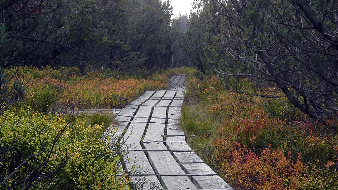 Die Nationalparkphilosophie “Natur Natur sein lassen” ermöglicht eine natürliche Waldentwicklung. Dazu gehören auch absterbende Bäume. Bitte achten Sie besonders bei stärkerem Wind auf die Gefahr herabstürzenden Totholzes.