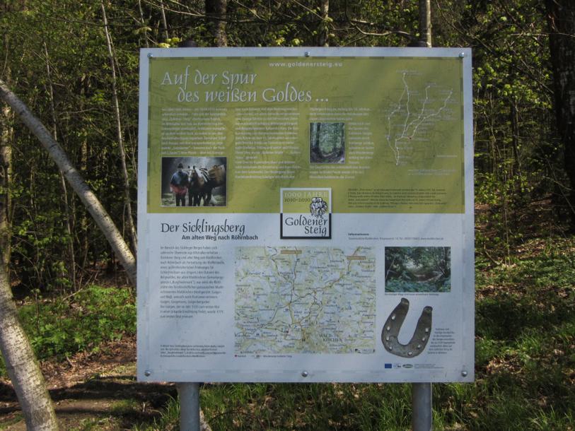 Als "Goldener Steig" wird der Saumhandelsweg bezeichnet, der in mehreren Verzweigungen von Passau nach Böhmen führte und Jahrhunderte lang als eine der wichtigsten Handelsverbindungen über die Mittelgebirgszüge des Bayerischen Waldes in den Böhmerwald galt. So auch der ehemalige bayerische Konkurrenzweg, die "Goldenstrass". Entlang markierter Routen kann man heute auf den Spuren dieser alten Handelszüge wandern. Hier speziell den Prachatitzer Weg von Passau nach Prachatitz.