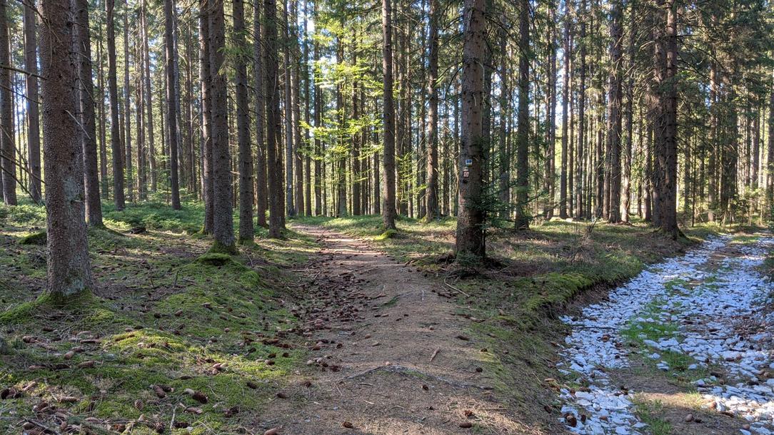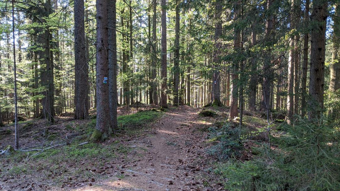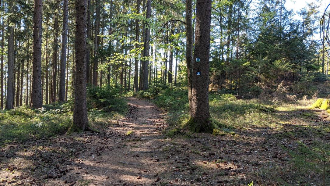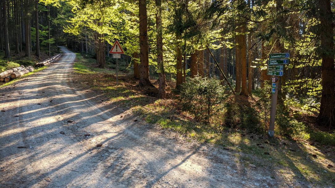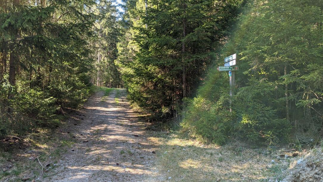 Es folgt ein anstrengender Anstieg, der hauptsächlich auf Schotter bergauf bis nach Danzeröd führt. Abschnittsweise muss das Bike, je nach Leistungsvermögen, geschoben werden. Die Weiterfahrt auf dem Wanderweg bis zur Wallfahrtskirche „Frauenbrünnl“ verlangt fahrtechnisches Können. Auch die Abfahrt bis nach Zimmerau, die zum Teil aus Singletrails besteht, fordert.