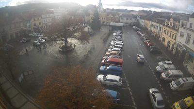 Nach dem Dorf biegen wir rechts ab und gehen auf einer asphaltierten Straße in das Tal des Baches Podmokelský potok. Weiter geht es über die Brücke auf einem Forstweg bergauf, umgeben von ca. 300 m durchgehendem Nadelwald, der in einen Schotterweg übergeht. In Čímice gehen wir durch eine bebaute Fläche, auf der rechten Seite ist das Denkmal, das den Opfern beider Weltkriege gewidmet ist, und auf der linken Seite steht die Kyrill und Method Kapelle, die in den Jahren 1862-1863 gebaut wurde. Der Weg führt weiter auf der Asphaltstraße und dann an der Gabelung nach rechts auf der wenig befahrenen Straße 2,6 km nach Žichovice. Unterwegs überqueren wir den Bach Nezdický potok und wir können die Aussicht auf die umliegenden Felder und links Luftlinie über 2 km zur Burgruine Rabí (540 m ü. M.) genießen. Der Gunthersteig führt zwischen den Häusern weiter und schließt sich beim Wegweiser Žichovice-ves auf den Radweg Nr. 312 (121) an, dann auf den Radweg Nr. 12 (Otavská). Wir gehen weiter auf der Schotterstraße und entlang der Bahnlinie und des Flusses Otava. An der Hrůbaty-trať überqueren wir rechts die Bahnlinie, verlassen die Otava auf der linken Seite und gehen umringt von Feldern und späteren Wäldern - auf der rechten Seite ist der Berg Hůrka (486 m ü. M.) zwischen den Bäumen versteckt - und gehen Sie 3,2 km bis zum Teil V luhu und auf einer asphaltierten Straße in Richtung Zentrum von Velké Hydčice weitergehen können. Bevor wir nach links abbiegen und die Bahnlinie überqueren, können wir die Sonnenuhr am Gasthaus erkennen, die statt Zahlen die Tanzfiguren hat. Hinter den Gleisen laufen wir um das Restaurant und Lebensmittelgeschäft herum. Nach dem Rechtsabbiegen geht es am Bootscamp vorbei, wieder entlang der Otava über die gesamte Wiese bis zu den Orten, an denen wir durch einen kleinen mysteriösen Tunnel rechts die Bahn hinuntergehen. Von Práchna steigen wir auf der Forststraße bis zum Waldrand ab, wir gehen durch den Hof und weiter auf einem Feldweg. Nach 700 m Fußweg vom Hof biegen wir rechts von der Schotterstraße zwischen den Gärten ab und gehen zur Straße. Wir biegen links ab und steigen zur Ottawa-Fußgängerbrücke hinab. Hinter der Brücke biegen wir links in die Nábřežní-Straße mit der Sonnenuhr, das Tor-kocour, das in der zweiten Hälfte des 13. Jahrhunderts ein Teil der Stadtmauer war, um an das Wasser zu besorgen, dann gehen wir durch Podbranská-Straße bis zum Platz, wo unweit des Brunnens und des Trinkbrunnens diese Etappe endet.