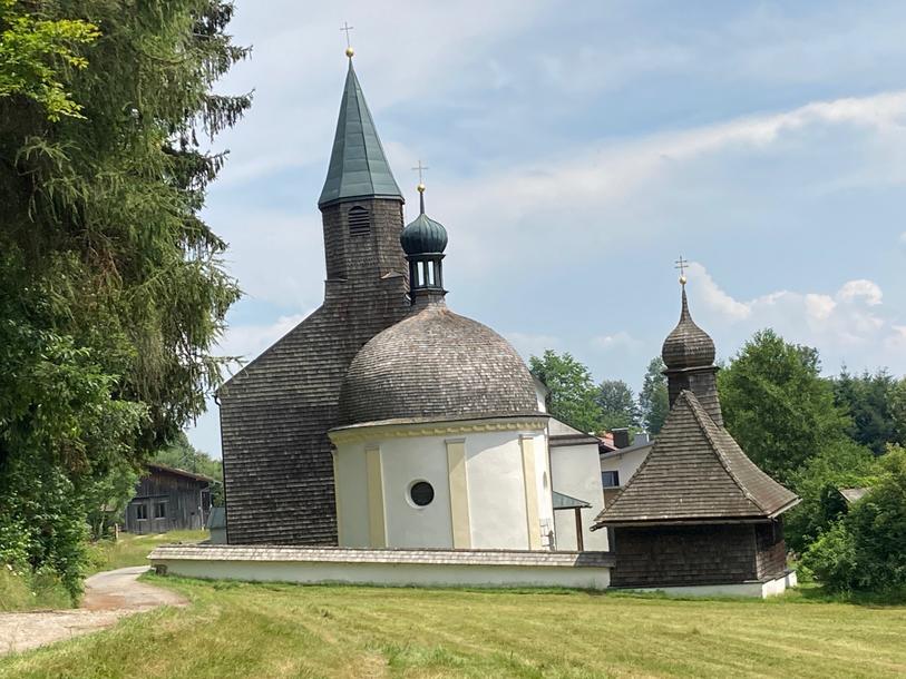 Vorm Dorfplatz geht es über den Trie-Parkplatz zur St. Hermann Kirche. Ein kurzer Stop lohnt sich hier immer!