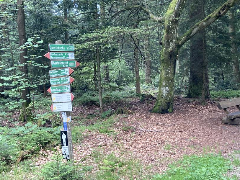 Vorbei am St. Hermann gehts aufwärts Richtung Hermannsried. Hat man Hermannsried durchquert, gelangt man auf einen gut gepflegten Forstweg. Auf diesem Forstweg bleibend kommt man vorbei an der Josephsbuche, dem Rusel Absatz und am Golfplatz/Rusel.