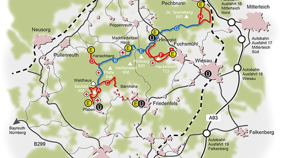 Die Hackelsteinloipe ist ein Rundkurs mit insgesamt 8 km Länge. Beginnt man in Fuchsmühl am Forsthaus erreicht man nach ca. 4 km den Skihauptwanderweg (Abschnitt E). Fängt man den Kurs an der Kapelle beim Hackelstein an, erreicht man ebenfalls nach ungefähr 4 km den Abschnitt E des Skihauptwanderwegs.Alle Angaben wurden mit größter Sorgfalt erhoben. Die Angaben erfolgen ohne Gewähr und erheben nicht den Anspruch auf Vollständigkeit. Die Verwendung der Daten hat eigenverantwortlich zu erfolgen. Informieren Sie sich vor Beginn der Tour über die Wetterverhältnisse. Bitte beachten Sie darüber hinaus die Informationen oder Beschilderung vor Ort und berücksichtigen Sie, dass die Benutzung von Privatstraßen, insbesondere Forststraßen, landwirtschaftlichen Güterwegen und Wanderwegen rechtlichen Beschränkungen unterliegen kann.