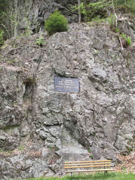 Der etwa 1,6 km lange Wegeabschnitt auf dieser Talseite bringt uns ebenfalls wieder langsam zu Tale und endet beim alten Steinbruch am Ende des Dürrenwaider Tales. Hier kommen wir am Frankenwaldbrunnen (1955 von der örtlichen FWV-Ortsgruppe gebaut) und an der Prinz-Ludwig-Gedenktafel vorbei. Sie erinnert an den Besuch des Prinzregenten im Jahre 1899. Auf dem Gehsteig, dem Ölsnitzbach entlang, erreichen wir die Neumühle und nach 400 m, die Straße links aufwärts, unseren Ausgangspunkt Silberstein.