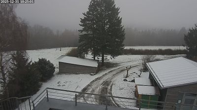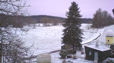 Wir wandern immer noch leicht bergan durch den Wald und schließlich eben weiter, bis wir kurz vor der Straße auf den Schanzenbinderweg stoßen. Wenn wir einkehren wollen, folgen wir diesem geradeaus zur Straße (Hubertushöhe-Birnbaum), der wir noch etwa 400 Meter bis zum, 595 m hoch an der Frankenwaldhochstraße gelegenen, ehemaligen Forsthaus Hubertushöhe nach links folgen.