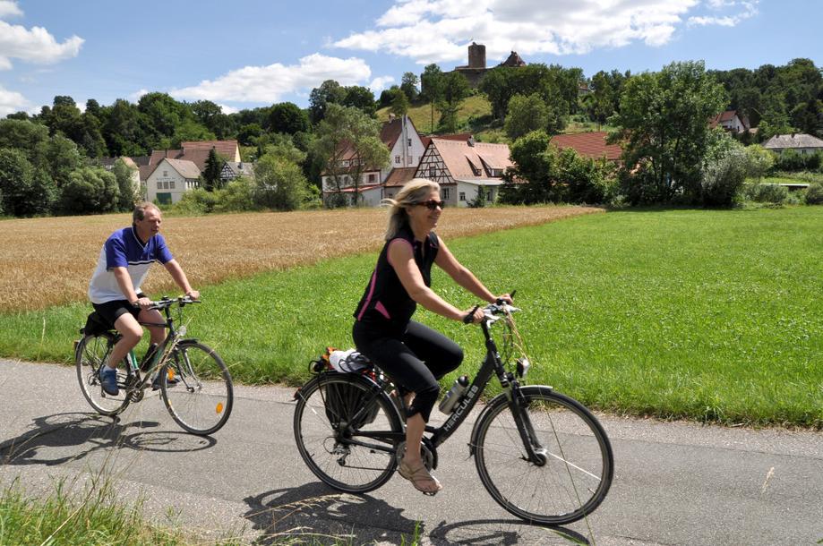 Diese entspannte Tour beginnt inmitten des Ortes Burgthann mit seiner auf einem Bergsporn thronenden, mittelalterlichen Burg. Wir folgen der Markierung Nr. 16 in westlicher Richtung und radeln auf schönen Forstwegen durch den Reichswald nach Feucht. Der Markt Feucht hat mit seinen Schlössern und Museen viel zu bieten. Kurz danach erreichen wir das Baudenkmal Brückkanal mit gemütlichem Biergarten. Wir überqueren diese historische Bogenbrücke und folgen nun dem idyllischen Ludwig-Donau-Main-Kanal in östlicher Richtung. Es geht immer geradeaus; darum Acht geben: Wir wollen den Rechtsabzweig nach Lindelburg und den Wechsel auf die Tour Nr. 15 nicht verpassen! Wir passieren den Ort und erreichen Unter- und dann Oberferrieden, letzteres liegt genau an der Europäischen Wasserscheide Nordesee - Schwarzes Meer. Weiter geht die Tour nach Ezelsdorf, bekannt durch den im Jahr 1953 gefundenen gut 3.500 Jahre alten „Goldhut“. Ein Abstecher zum „Goldkegelplatz“ mit übergroßer Nachbildung des Kultgegenstands lohnt sich. Weiter geht es Richtung Rasch und schon bald radeln wir wieder entlang des Ludwig-Donau-Main-Kanals, jetzt in westlicher Richtung bis zum Ausgangspunkt Burgthann. Wer möchte, kann die Tour mit einem Besuch des Heimat- und Kanalmuseums in der Burganlage und fränkischen Schmakerln in den anrainenden Gasthäusern gemütlich ausklingen lassen.