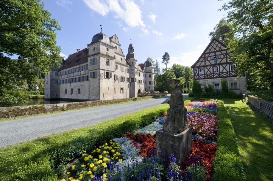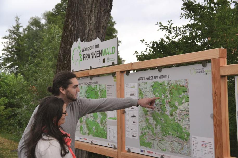 An der zentralen Kreuzung in Mitwitz Richtung Coburg. Nach der Brücke links abbiegen. Der Ausgangspunkt befindet sich vor dem Wasserschloss.