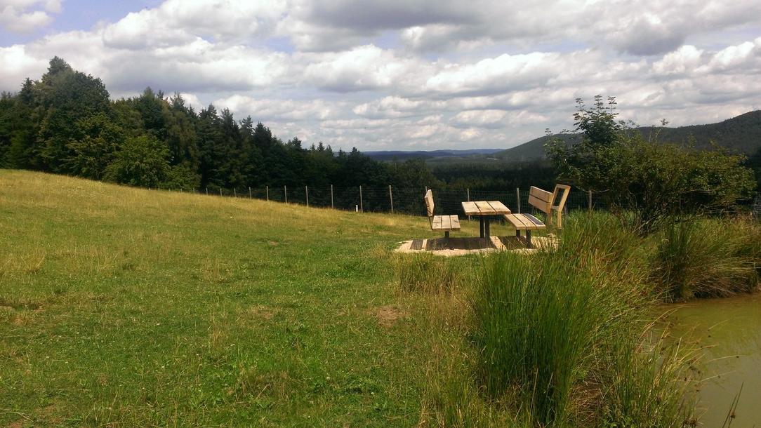Nach der Brücke halten wir uns rechts und gelangen an einen Teich, vor welchem wir nach links abbiegen. Bald erreichen wir die Keilstöckteiche und nutzen den Damm zwischen den beiden Gewässern um die Talseite zu wechseln. An der nächsten Kreuzung biegen wir nach links ab und erreichen bald Bächlein. Das dortige Waldhotel lädt zu einer Einkehr ein, der Wanderweg führt am Waldhotel nach rechts in einen Feldweg.