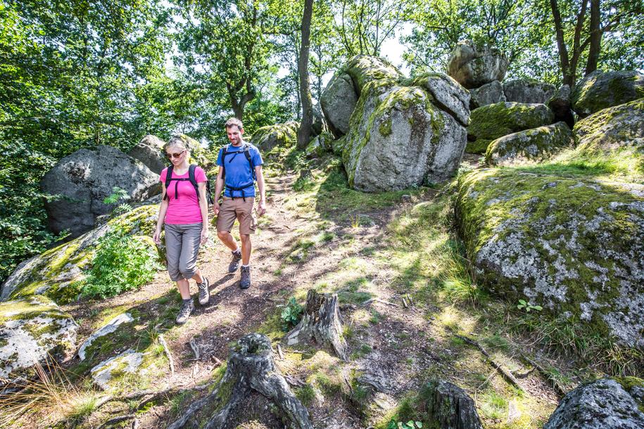 Kurz nach dem Prackendorfer und Kulzer Moos an einer Kreuzung mitten im Wald teilt sich der Goldsteig in die Nord- und die Südroute. Die südlichere Route ist keinesfalls die einfachere Strecke – im Gegenteil: Während sich die Tour im Norden immer weiter, langsam aber stetig nach oben schraubt, ist die Strecke über den südlichen Vorwald geprägt von vielen Auf- und Abstiegen, hat aber auch viele Vorzüge und vor allem herrliche Fernblicke. Über Dautersdorf geht es gemächlich, aber landschaftlich äußerst reizvoll, hin zur Wallfahrtskapelle Schönbuchen und von hier – bergab auf schönen Waldpfaden und Wegen – bis nach Kröblitz. Ohne nennenswerte Anstrengungen führt der Goldsteig weiter, bis zu einem Wegweiser, der zu einem kleinen Abstecher zum sagenhaften Druidenstein verführt. Wieder auf dem Weg zurück, ist schon bald die Pfalzgrafen-Residenz Neunburg vorm Wald mit ihrem schönen, historischen Altstadtkern erreicht.