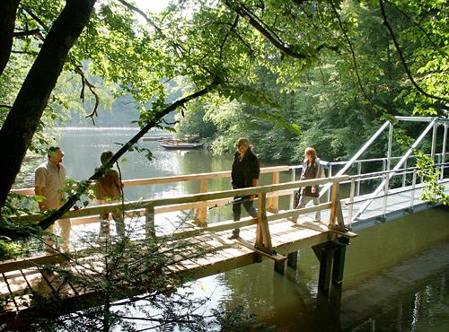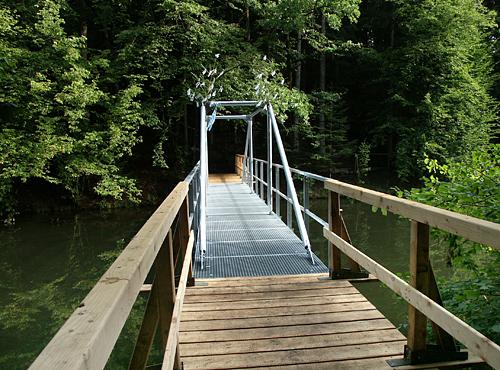 Wiesenfelden - Haunkenzell: Der Naturbeobachtungssteg... ...von Wiesenfelden ist, falls hier übernachtet wurde, der Ausgangspunkt der heutigen Etappe. Über Utzenz...