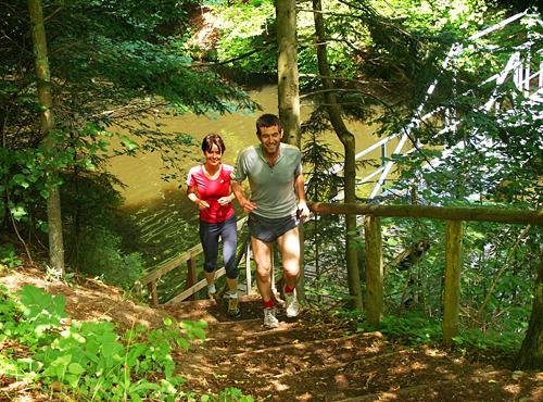 …startet in Ruderting und führt nach Passau. Auf den naturbelassenen Waldpfaden führt der Weg über kleine Erhöhungen und Bacheinschnitten über Stege und verwurzelte Waldpfade entlang der ehemaligen Ilztalbahntrasse (Reaktivierung) hinunter zum Ilzstausee. Weitere Infos auf: www.tiefenbach-live.de und www.gemeinde-tiefenbach.de. Dort ist eine Anmietung einer Zille möglich. Ab der Mausmühle führt der Naturweg hinunter bis zum Stauwerk Oberilzmühle mit Badeplatz. Die nächste Pausenstation ist der Gasthof- Pension “Zur Triftsperre". Die Sperrpfeiler und der dunkle Trifttunnel, den der Wanderer gleich durchschreitet, sind Zeitzeugen der gefährlichen Holztrift. Ein imposanter Steg führt im Zickzack zum Tunnel. Der Goldsteig kürzt mit Begehen des Tunnels die Ilzschleife ab und führt innerhalb des Ilzbogens nach Hals. Kurz vor Hals thront auf einem Berg die Burgruine Hals. Über eine allerletzte Anhöhe gelangt der Wanderer schließlich zur Veste Oberhaus, einem grandiosen Aussichtspunkt auf Passau. An dieser Burg vor dem Nordtor schließt sich der Kreis des Goldsteiges: Hier treffen Nord- und Südtour des Goldsteiges aufeinander. Tourist-Info Passau, 0851/955980