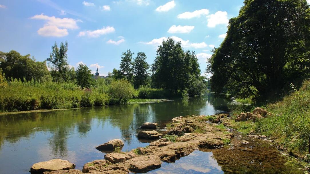 Ensdorf gelangt man auf die andere Seite des Flusses, wo der Weg den