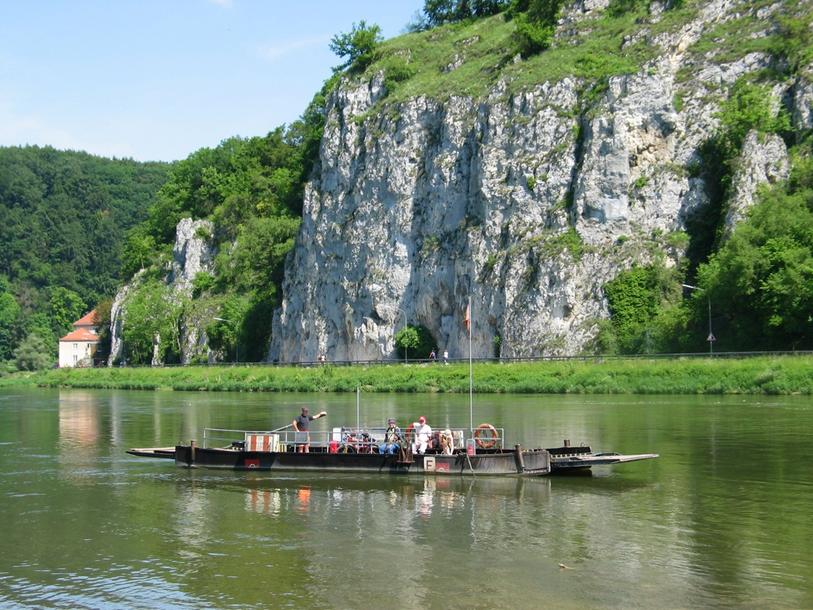 Nach ca. einem weiteren Kilometer am Waldrand entlang zweigt der Limes- bzw. Jakobsweg ab, auf dem sich in wenigen Minuten Entfernung die Hadriansäule und eine Rekonstruktion eines römischen Limes-Wachturms befindet. Wieder zurück auf dem Wanderweg und weiter am Donauufer entlang erreicht man die Seilfähre bei Hienheim. Nur durch Muskelkraft und durch die Strömung angetrieben, bringt Sie das nostalgische Gefährt sicher auf die andere Seite nach Eining. Direkt an der Anlegestelle befindet sich ein herrlicher Biergarten, der zu einer wohlverdienten Pause einlädt.