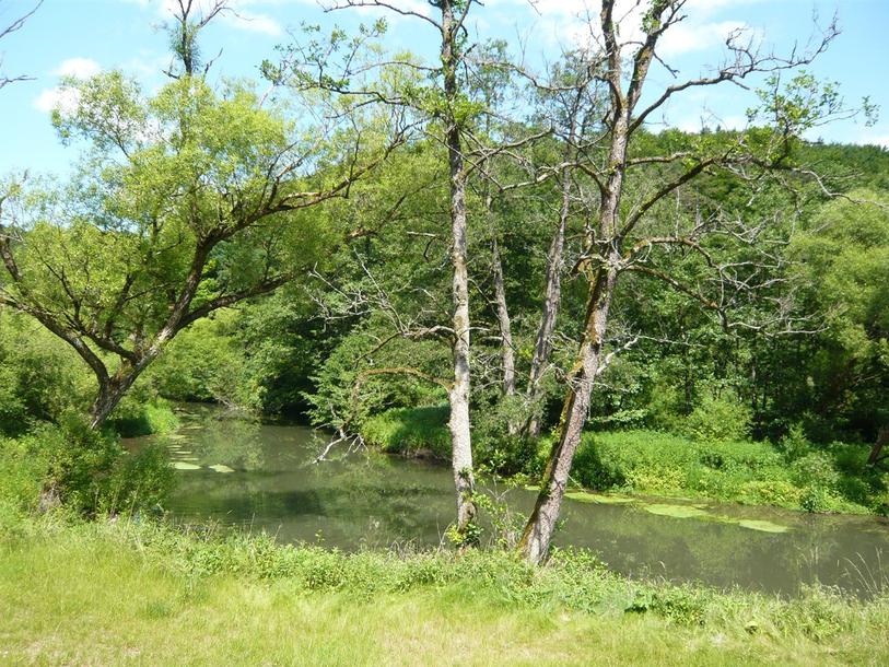 Stellen gibt der Wald den Blick auf die sich idyllisch dahinschlängelnde