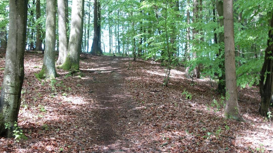 an der Hangkante entlang durch lichten Laubmischwald. An einzelnen