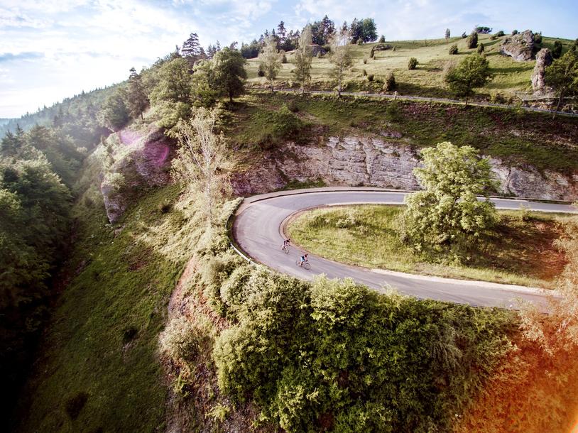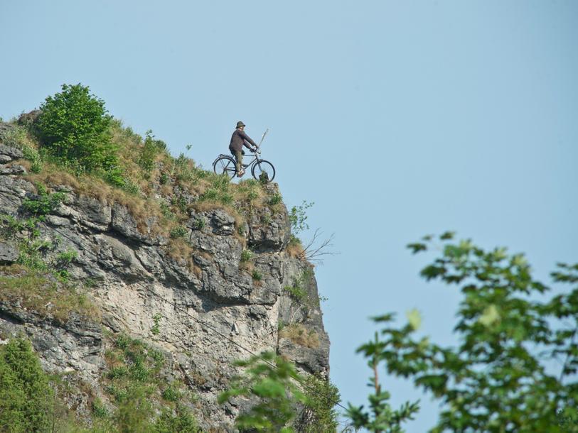 Über das Hochplateau des Juras, vorbei an idyllischen Dörfern, erreicht man den „Radfahrer Claudius“, der am Beginn des Kleinziegenfelder Tals auf seinem Felsen über das Tal wacht. Blütenreiche Wacholderhänge, Schafsherden auf den steilen Magerrasenhängen, glasklare Bäche und schroffe Felsformationen prägen das Landschaftsbild.
