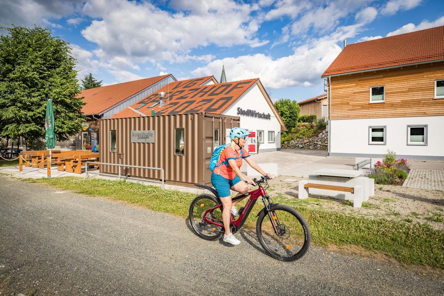 Ganz entspannt auf einer ehemaligen Bahntrasse durch idyllische Landschaft geht es nun von Schönsee über Schneeberg nach Oberviechtach. In und um Oberviechtach locken gleich drei Radlerfreundliche Betriebe zur Einkehr. Bei Obermurach lohnt sich ein Abstecher zur Burg Haus Murach – auf dem Weg dahin wird noch ein kurzer Stopp eingelegt beim Burgwart, um den Burgschlüssel mitzunehmen und dann die Aussicht vom Burgturm zu genießen. Auf der weiteren Strecke gibt es in zahlreichen Ortschaften Einkehrmöglichkeiten, vom Biergarten über StodlWirtschaft, Hof-Café bis hin zum Dorfwirtshaus ist bestens für das leibliche Wohl gesorgt.