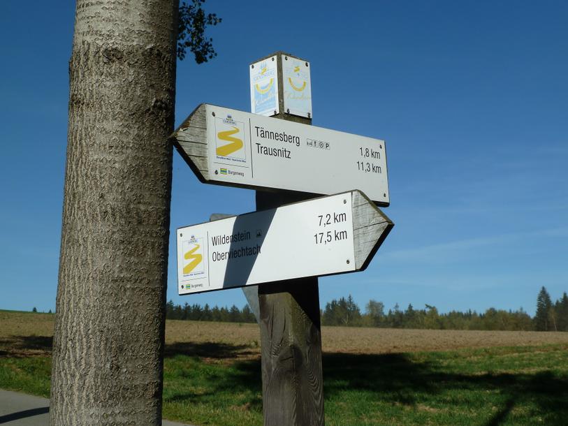 Der Geologische Lehrpfad verläuft auf der Trasse des Burgenwegs und des Goldsteigs.