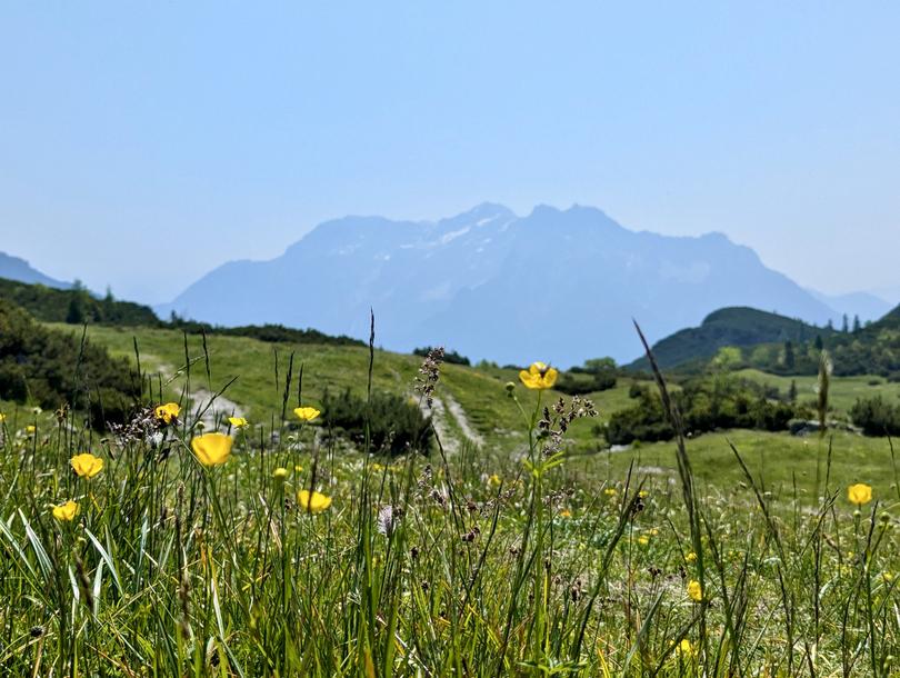 Almblumen, Gebirgswälder, versteinerte Korallen und ein spektakulärer Blick ins Ewige Eis vereint auf einem abwechslungsreichen Rundweg im Wandergebiet Hemmersuppenalm.