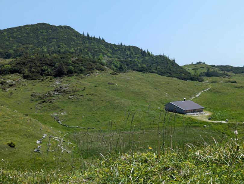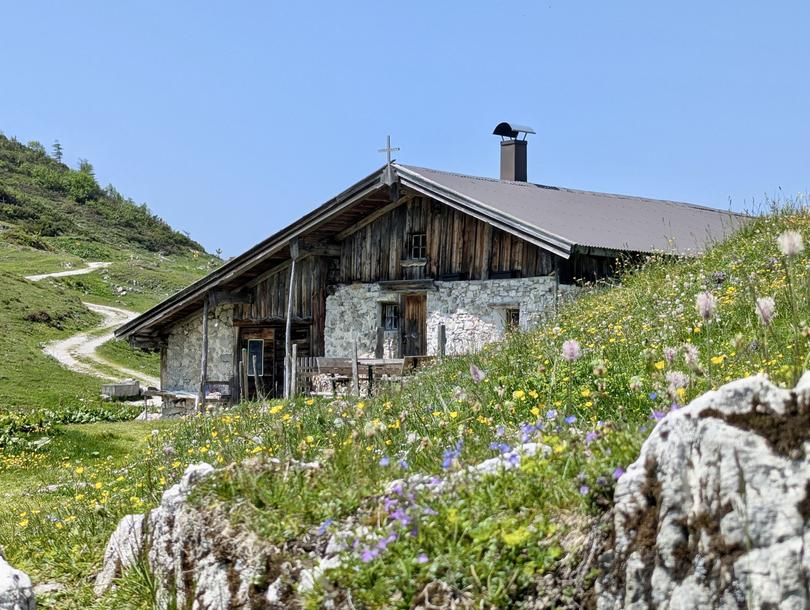 Von der bewirtschafteten Hindenburghütte aus haben Sie einen herrlichen Blick über das Almgebiet und auf den Chiemsee.