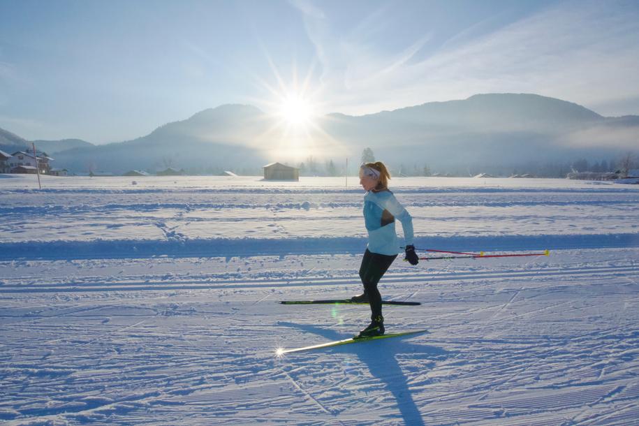 Daten der Tour: leicht - 3,8 km - 17 hm - klassisch/skating Beschreibung der Tour: Diese einfache Loipe nutzt die besondere Tallage aus. Der Blick zu den Bergen ist ein toller Begleiter. Für Anfänger und Geübte bestens geeignet. Ein Genuss für alle Sonnenhungrigen. Einkehrmöglichkeiten: Festsaal - Reit im Winkler Stuben, Gaststätten im Ort und Entfelden.