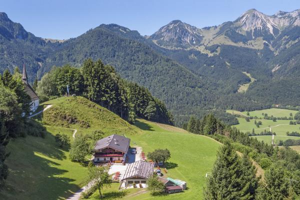 Leichte Wanderung über die Chiemhauser Alm zur historischen, hoch über dem Tal der Tiroler Ache liegenden Streichenkirche.