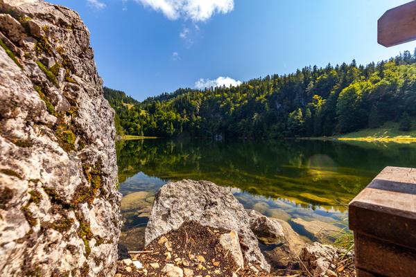 Besonderheiten: wunderschöner, erfrischender Bergsee mit Bademöglichkeit; seltene Krebse im See; skurrile Felsenlöcher am Seeufer