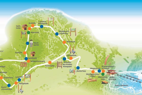 Wissen, Spaß, Erholung und Panoramaausblicke - das alles bietet der gut 4 km lange Bergwalderlebnisweg Staffen - mit Spiel- und Ruhestationen sowie Infotafeln zum Bergwal