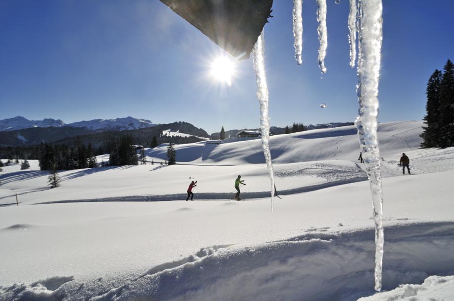 Klassisch/Skating • Von der Winklmoos-Alm vorbei an den Gaststätten Sonnenalm und Almstüberl auf einer leicht kupierten Loipe bis Moarlack. Gastst.geschlossen
