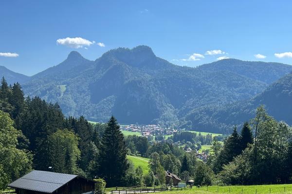 Von Oberwössen über den Teilleitenrücken hinunter nach Kruchenhausen und wieder hinauf zur Chiemhauser Alm. Ein Achterbahnweg mit herrlichen Ausblicken der Kondition erfordert.