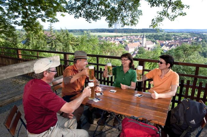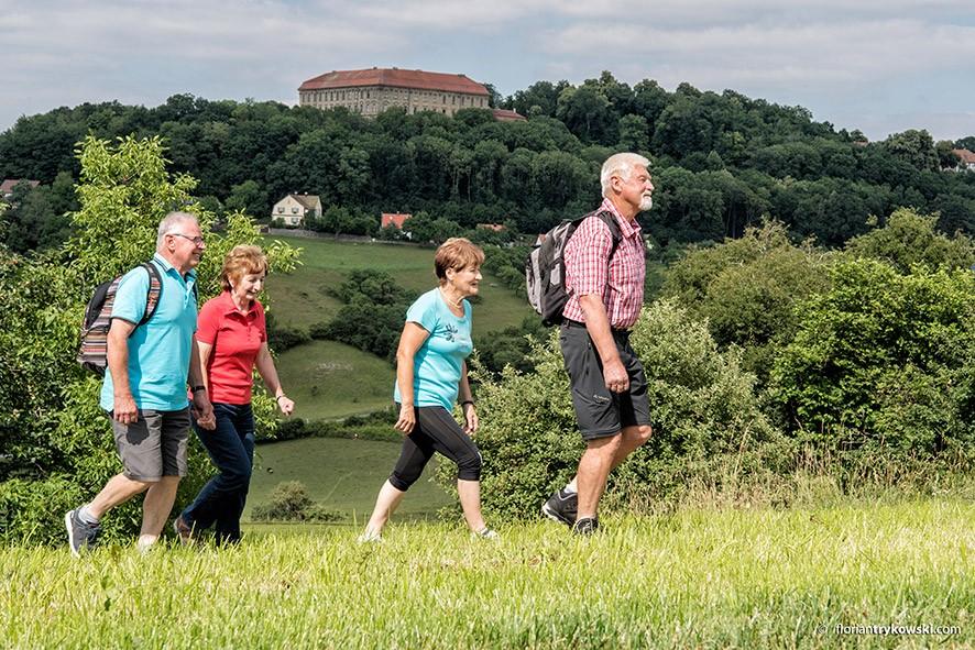 WegbeschreibungVom Schlossberg führt der Europäische Wasserscheideweg talwärts am barocken Rathaus, der katholischen Kirche Kreuzerhöhung, der evangelischen St. Kilians Kirche und am Dorfsee vorbei zur Wörnitzquelle. Am Ortsrand von Schillingsfürst können müde Wanderfüße in der Kneippanlage frische Kraft tanken (300 m).