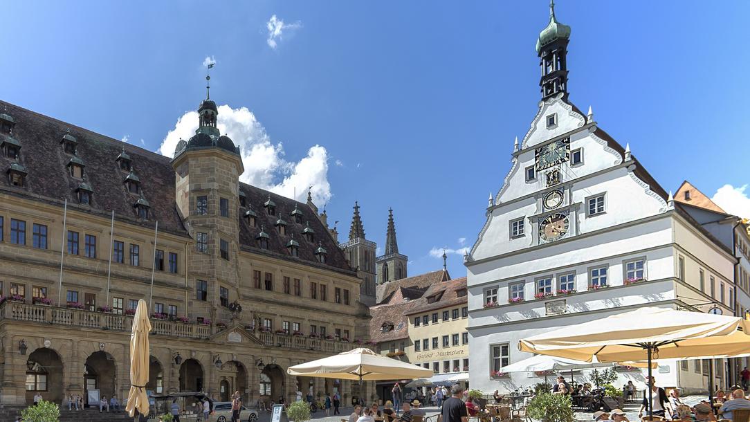 Rückweg: Wenn Sie nach Bettwar gegangen sind, gehen Sie den selben Weg wieder hinauf zum Mittelhangweg und folgen diesem weiter. Bei der ersten Abzweigung nach rechts folgen wird diesem Feldweg bergab in Richtung Straße, um kurz davor wieder links abzubiegen. Wir gelangen an die Abzweigung nach Steinbach, der wir links folgen, um an der nächsten Möglichkeit rechts die Brücke über den Steinbach zu überqueren. Hier trifft der Alternativweg 9a wieder mit unserem Hauptweg zusammen. Wir folgen nun der Straße bergauf, um bei den Hecken links auf einem steilen Pfad abzubiegen, der schon seit alters her die Kniebrecherin genannt wird. Wenn wir oben angekommen sind, folgen wir dem Hangweg, von dem wir bereits einen Blick auf Rothenburg haben. Der Weg passiert an einem Wegkreuz eine mittelalterliche Steinmarter. Hundert Meter weiter biegen wir rechts in die Schleehsteige ab, gehen darauf ca. 200m leicht bergab um dann links auf den Mittelhangweg abzubiegen. Der Feldweg führt uns über Wiesen und zwei wilden Klingen (Hangeinschnitte) die Hangmitte entlang bis zur Straße, die Rothenburg mit Detwang verbindet. Kurz davor steigen wir den gepflasterten Weg hinauf zur Heckenackersiedlung und gelangen auf den Walnußweg, dem wir rechts folgen. Am Ende der Straße, wechseln wir auf die andere Seite der Heckenackerstraße und gehen rechts weiter. Wir sind nun an der Mergentheimer Straße, die wir an einer Verkehrsinsel überqueren. Vor uns wird das Klingentor sichtbar, dessen Name von der mächtigen Klinge kommt, die sich nordwestlich der Verkehrsinsel ins Tal zieht. Durch das Tor kommen wir in die Klingentorbastei mit der Wehrkirche St. Wolfgang, dem Schäfertanzmuseum und den Kasematten. Durch die Klingengasse gehen wir nun der Jakobskirche entgegen, unterqueren diese und kommen links an das Jakobspilgerdenkmal. Jetzt ist es nicht mehr weit zu unserem Ziel- und Ausgangspunkt - entlang der Jakobskirche, dann rechts über den Grünen Markt kommen wir halblinks zum Marktplatz.