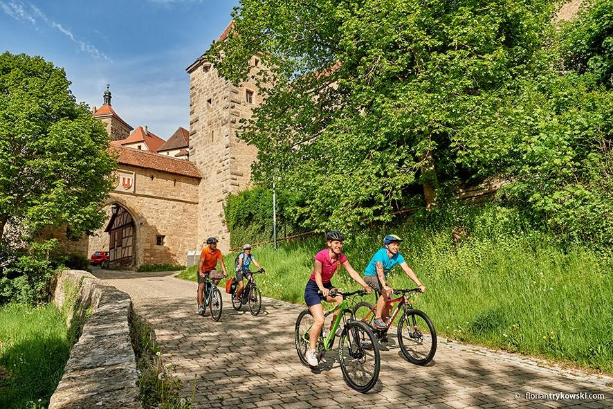 Rothenburg ob der Tauber ist einen Besuch wert. Der historische Stadtkern und die Stadtmauer sind vollkommen erhalten und es gibt zahlreiche Museen und Freizeitmöglichkeiten. Vom Burggarten hat man einen wunderbaren Ausblick über das Tal. Viele Veranstaltungen und historische Feste sind ein wunderbares Ziel für einen Radausflug.