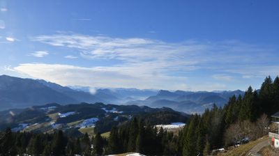 Wendelstein mit seinen Trabanten und der zackige Zahme Kaiser im Süden.