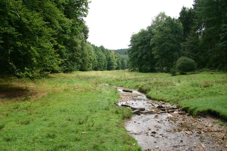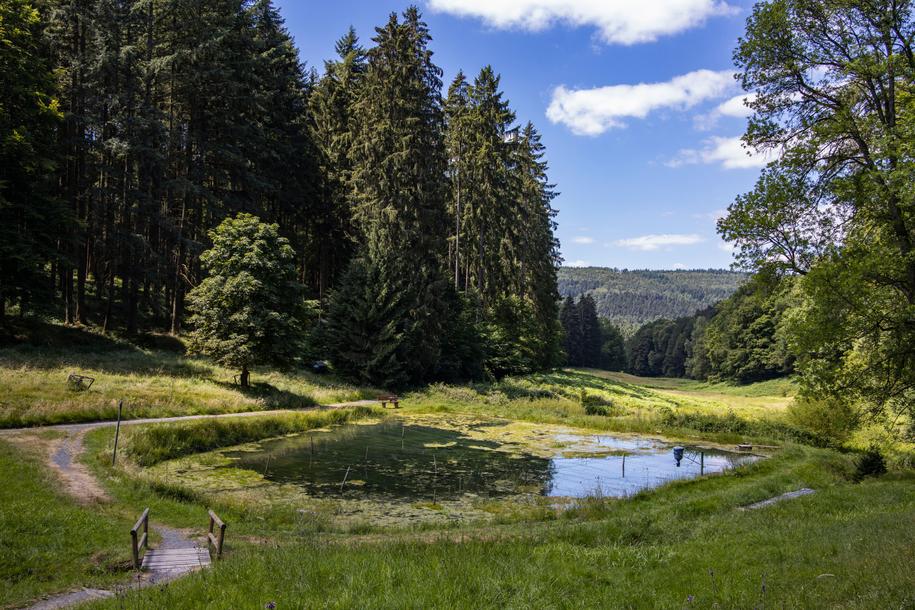 Start des „Qualitätsweges Wanderbares Deutschland“ ist am Bahnhof Bad Soden-Salmünster. Hier lohnt abseits des Wanderweges ein Abstecher in die nahe historische Altstadt Salmünsters mit ihren Amthöfen und Fachwerkbauten rund um die barocke Klosterkirche St. Peter und Paul. Nach einem ersten Anstieg mit weiter Aussicht über die Stadt, geht es durch den Spessartwald, vorbei an den romantischen Hirschbornteichen, der Bildeiche und durch eines der schönsten Spessarttäler, dem Haseltal, nach Bad Orb.